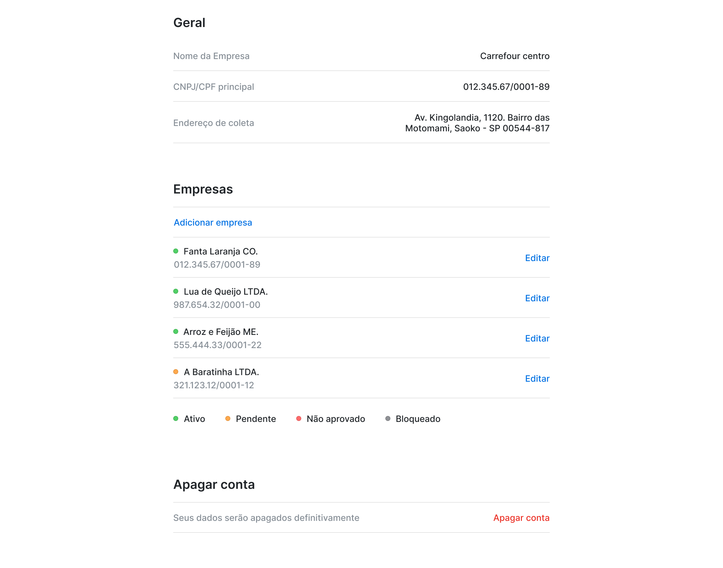 É comum clientes operarem com mais de um CNPJ e a Área do Cliente permite que eles tenham a facilidade de ter tudo em um único perfil.