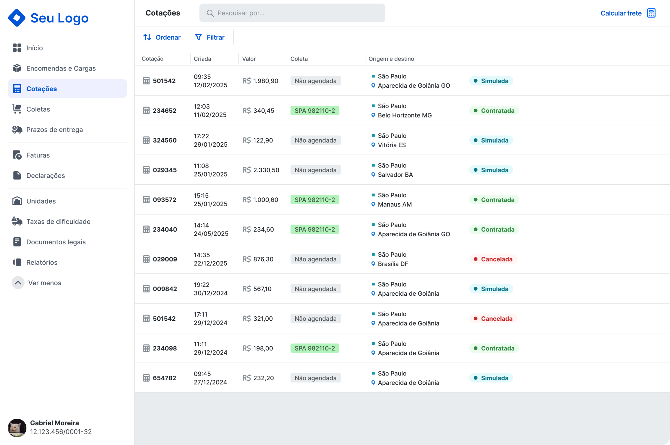 Seus clientes terão acesso fácil e rápido aos cálculos de frete, permitindo que sua transportadora receba volumes cada vez maiores de cotações diariamente sem a dependência de agentes humanos.