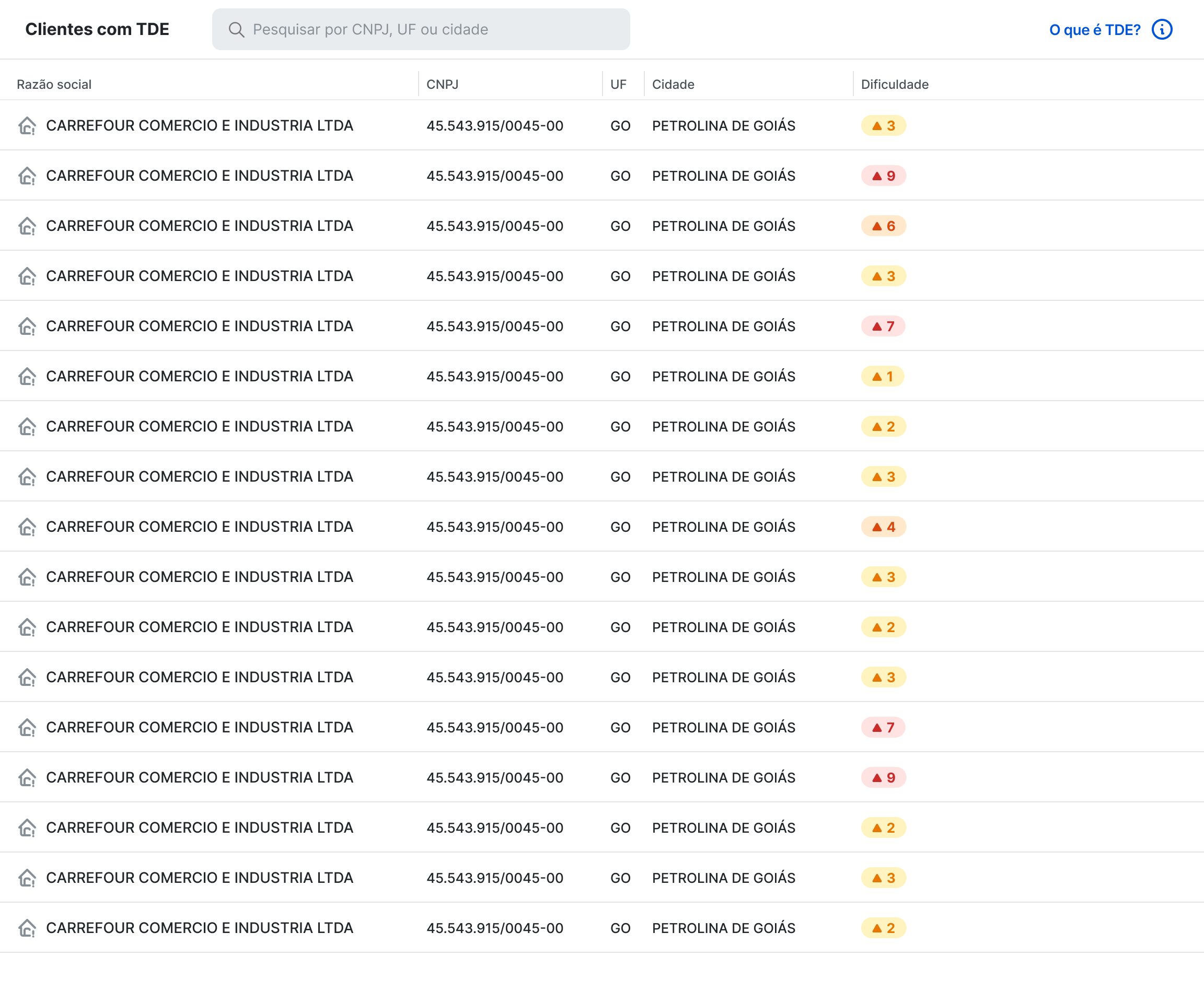 Cada conta de cliente pode ter múltiplos CNPJs cadastrados