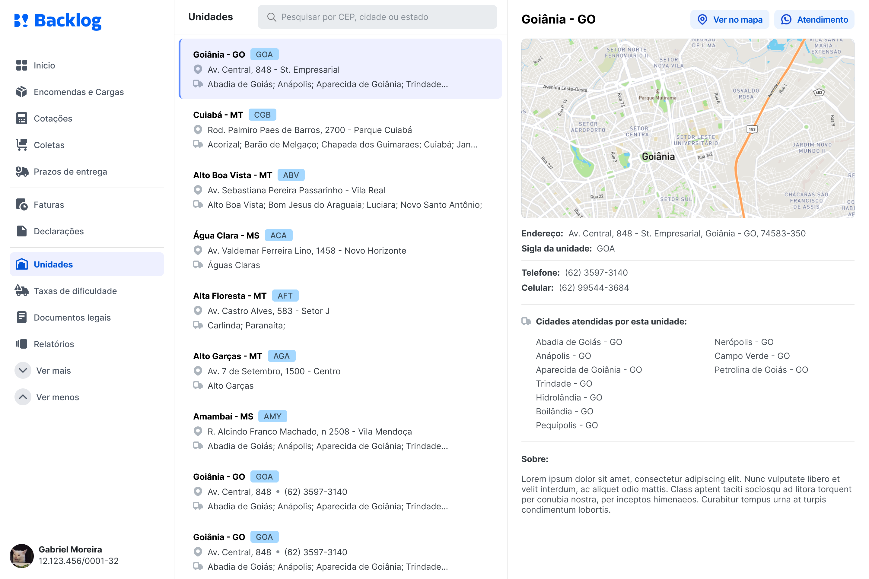 Acesso rápido aos status de todas as mercadorias e notificações de ocorrências.
